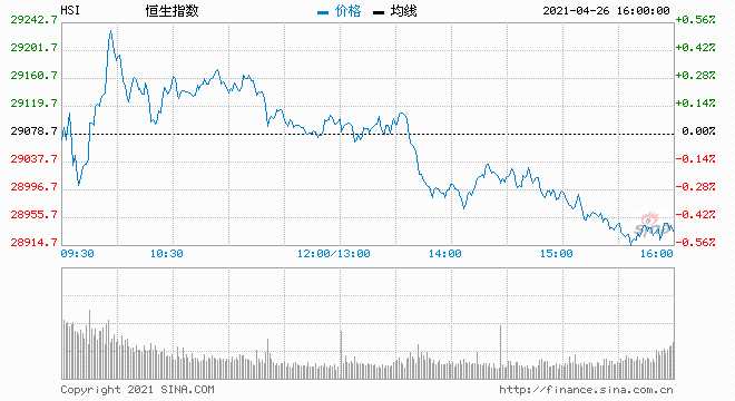 4月26日消息,美股上周五表現(xiàn)不俗,美股三大指數(shù)均上揚(yáng),當(dāng)中以納指升幅最大,達(dá)到1.44%,道指及標(biāo)普則分別上升0.67%及1%。今日港股高開低走,截止收盤,港股恒指跌0.43%,報(bào)28952.83點(diǎn),國企指數(shù)跌0.78%,紅籌指數(shù)跌1.35%。