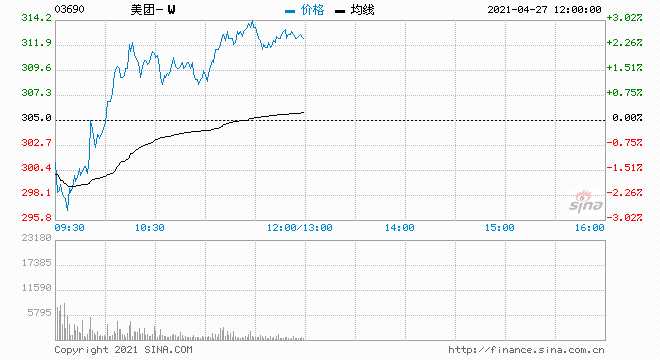 因涉嫌壟斷被立案調(diào)查,美團(tuán)(3690.HK)早盤一度低開且跳水跌近3%,但隨后快速拉升,盤中轉(zhuǎn)漲最高漲3.08%報(bào)314.4港元。