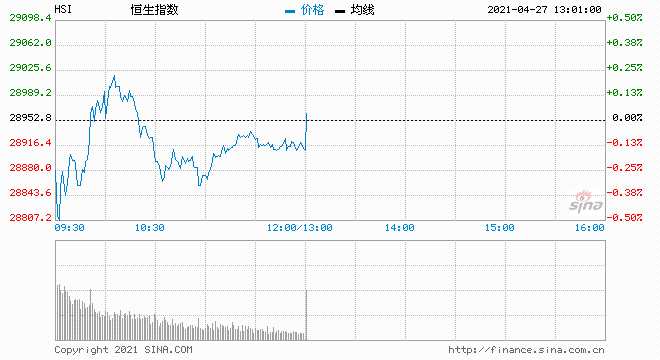 上午港股市場主要指數(shù)小幅沖高后回落,截至半日收盤,恒指跌0.15%報28910點,國指漲0.05%報10986點,恒生科技指數(shù)漲0.63%報8538點,主板成交843億港元。