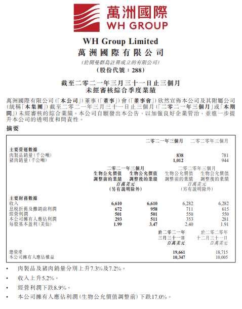 摘要: 4月27日消息,萬(wàn)州國(guó)際披露一季報(bào),公司2021年一季度營(yíng)業(yè)收入66.1億美元,同比增長(zhǎng)5.22%。