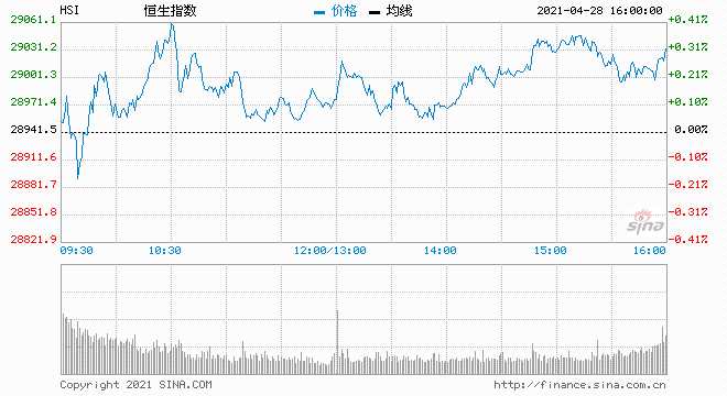4月28日消息,美股周二收盤漲跌不一。投資者正等待多家大型科技公司的財(cái)報(bào)與美聯(lián)儲(chǔ)貨幣政策會(huì)議決議。今日港股高開高走,截至收盤,港股恒指漲0.45%,報(bào)29071.34點(diǎn),國(guó)企指數(shù)漲0.28%,紅籌指數(shù)跌0.08%。