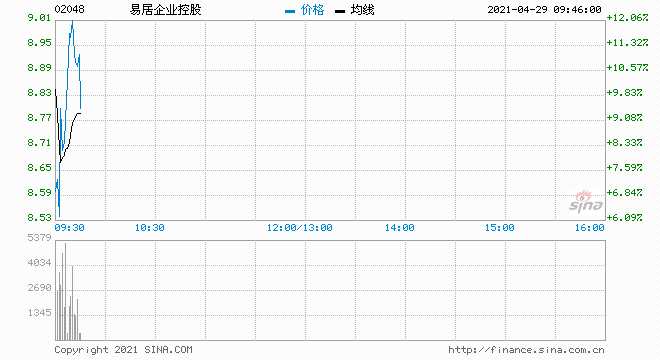摘要: 4月29日消息,易居企業(yè)控股漲13.43%,報(bào)9.12港元,最新市值159.51億港元。公司昨晚宣布,阿里巴巴出資9.9億港元增持易居股票,同時(shí)易居將收購(gòu)阿里所持有的天貓好房公司85%股份。