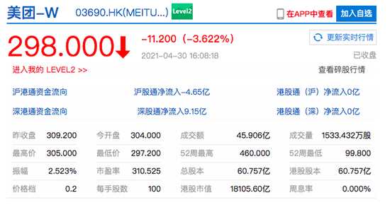 新浪科技訊 4月30日下午消息,香港恒生指數(shù)收跌1.97%,報28724.88點;恒生科技指數(shù)跌2.2%;嗶哩嗶哩港股收跌超5%,美團跌近4%,快手跌超3%,阿里巴巴跌近3%,騰訊控股收跌1.35%。