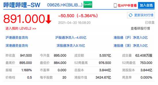 摘要: 查看最新行情新浪科技訊4月30日下午消息,香港恒生指數(shù)收跌1.97%,報28724.88點;恒生科技指數(shù)跌2.2%;嗶哩嗶哩港股收跌超5%,美團跌近4%,快手跌超3%,阿里巴巴跌近3%,
