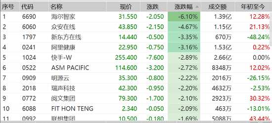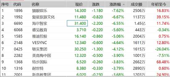 消費(fèi)股尤其影視股大跌,貓眼娛樂(lè)跌超7%,復(fù)興旅游文化、海爾智家、睿見(jiàn)教育、雅迪控股等跌超5%。