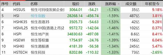 摘要: 5月3日消息,今日港股果然大跌,截至發(fā)稿,恒指跌幅擴(kuò)大至1.6%,28000點(diǎn)也岌岌可危,恒生科技指數(shù)跌超1.3%,有色、金融、消費(fèi)、科技都撐不住了,發(fā)生了什么?