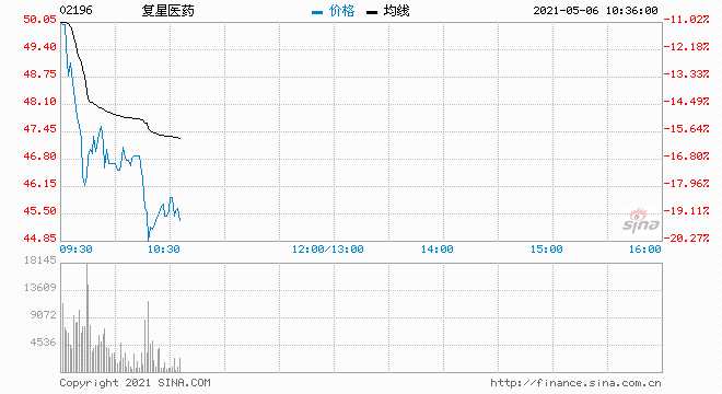 5月6日消息,疫苗股跌幅繼續(xù)擴(kuò)大,復(fù)星醫(yī)藥(600196,股吧)跌20%,康希諾跌18%,開拓藥業(yè)、國(guó)藥控股跌超10%。