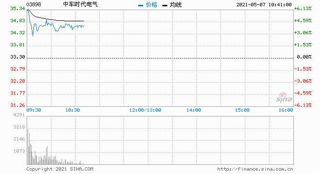 中車時(shí)代電氣(3898.HK)高開約7%,現(xiàn)漲幅收窄至逾4%,報(bào)34.7港元,總市值408億港元。