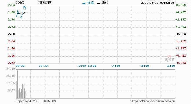 摘要: 四環(huán)醫(yī)藥(0460.HK)高開3.36%,報(bào)2.77港元,最新總市值262億港元。