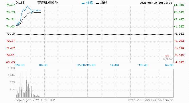 啤酒股普漲 青島啤酒漲近5%華潤啤酒漲超2%