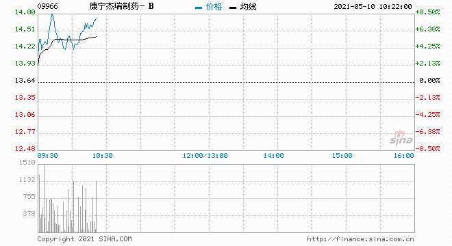 康寧杰瑞(9966.HK)高開高走,現(xiàn)漲5.57%報14.4港元,暫成交1484萬港元,最新總市值134億港元。
