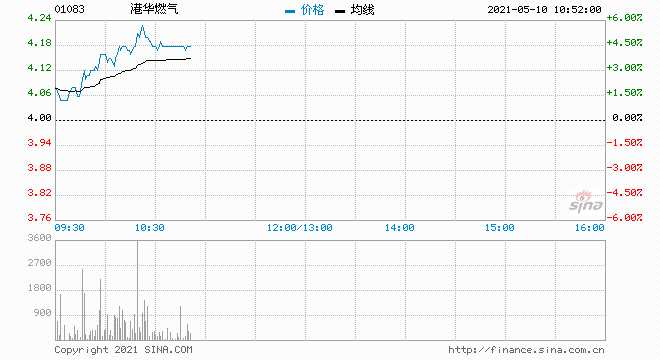 港華燃?xì)猓?083.HK)股價(jià)繼續(xù)走強(qiáng),現(xiàn)報(bào)4.18港元,漲幅4.5%,最新總市值124.1億港元,近5個(gè)交易日累計(jì)漲近12%。
