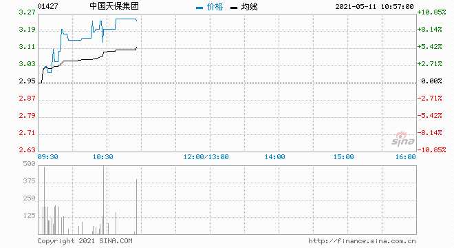 中國天保集團(tuán)(1427.HK)逆勢拉升漲7.12%,報(bào)3.16港元,成交額放大至4074萬港元,總市值25.6億港元。