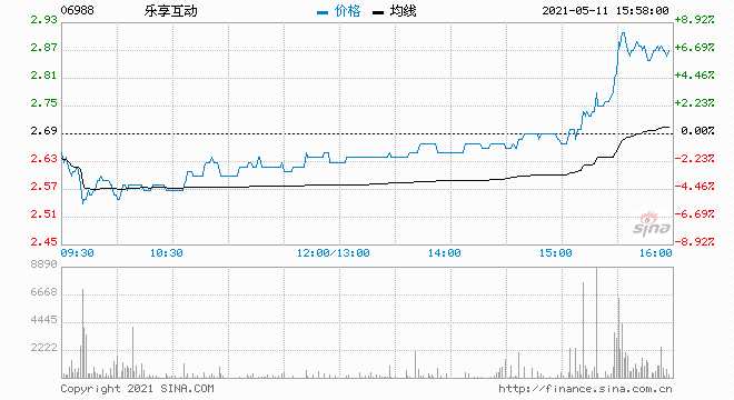 樂(lè)享互動(dòng)(6988.HK)尾盤拉升,現(xiàn)報(bào)2.88港元,漲幅7.06%,最新總市值62.9億。