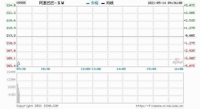 摘要: 昨晚公布業(yè)績的阿里巴巴(9988.HK)今早跳空低開5.25%報202港元,創(chuàng)去年6月以來新低,隔夜美股收跌6.28%報206.08美元,折算成港股市場價格為200.07港元/股。
