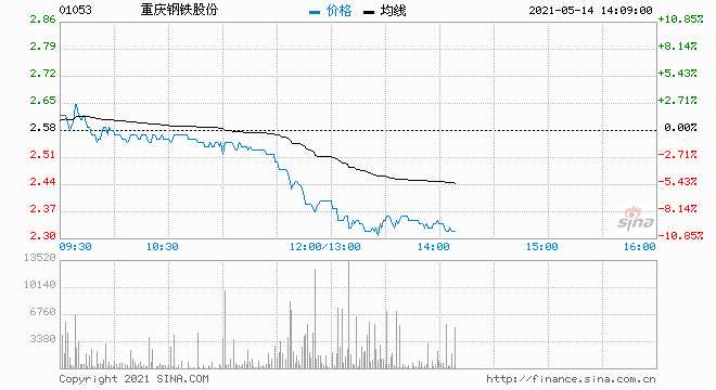 鋼鐵股午后重挫 重慶鋼鐵股份跌超9%