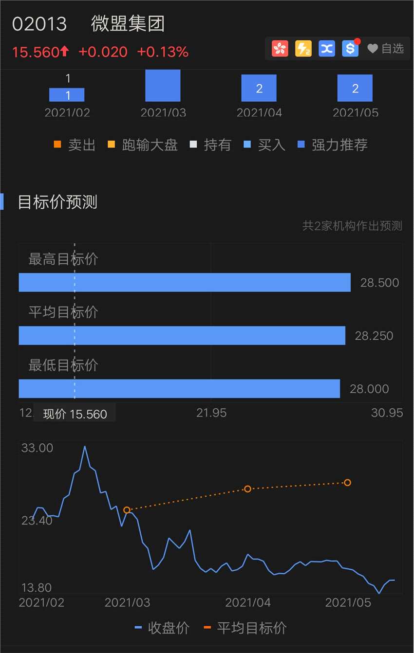 值得一提的是,近日,微盟也獲得了大摩、中信建投等投行的唱多,紛紛給予買入評價并提高目標價;在富途上,機構對微盟的最高平均目標價為28.25港元,較目前15.56港元的股價依然有45%的上升空間。