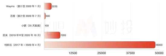 Google Waymo、百度、小鵬、蔚來(lái)及特斯拉宣稱(chēng)的自動(dòng)駕駛測(cè)試?yán)锍?萬(wàn)公里)。