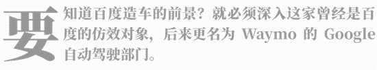 早在 2010 年,Google 已經(jīng)大力推動(dòng)自動(dòng)駕駛汽車(chē),多年來(lái)百度一直被視為“中國(guó)的 Google ”,對(duì)其亦步亦趨也是十分自然。