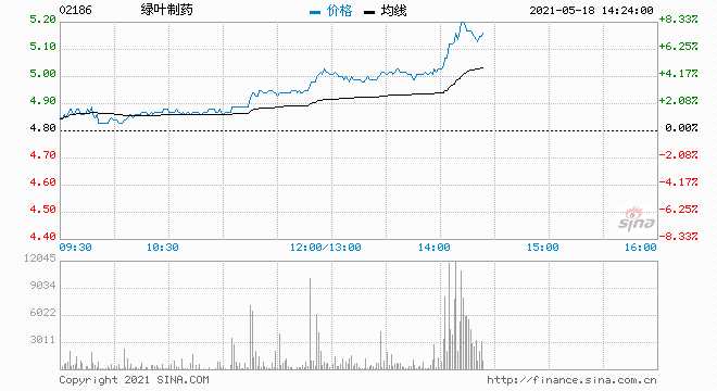 綠葉制藥上漲4.38% 現(xiàn)報5.01港元