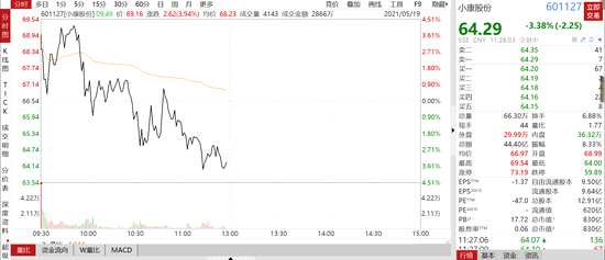 在汽車股集體走高的同時(shí),有2只藍(lán)籌汽車股卻跌了,小康股份(601127,股吧)從漲近4%倒跌逾3%,區(qū)間市值蒸發(fā)逾60億。