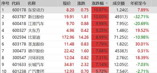 受次消息影響,不僅比亞迪沖擊漲停,還帶動(dòng)申萬汽車行業(yè)集體爆發(fā),多只汽車股上演漲停。
