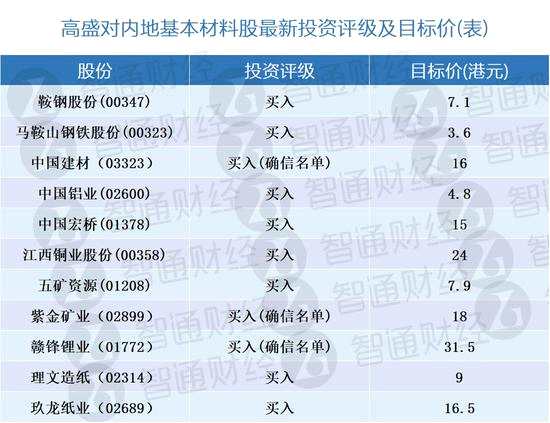 高盛:更新對基本材料股最新評級及目標(biāo)價(表)