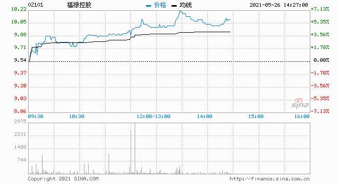 中國領先的虛擬商品服務商福祿控股(2101.HK)連續(xù)拉升上揚,5月12日以來股價累計漲幅達25%。今日盤中一度漲至7%,高見10.22港元,逼近歷史新高價,總市值超40億港元。