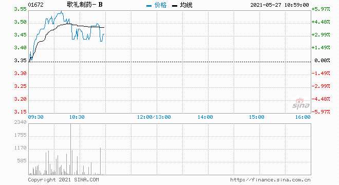 歌禮制藥上漲近4% 現(xiàn)報3.48港元