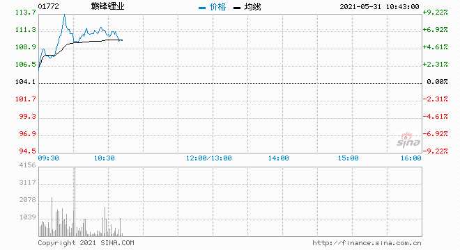 贛鋒鋰業(yè)(01772)發(fā)布公告,Cauchari-Olaroz鋰鹽湖項(xiàng)目一期年化設(shè)計(jì)產(chǎn)能4萬(wàn)噸電池級(jí)碳酸鋰目前進(jìn)展順利,計(jì)劃于2022年年中開(kāi)始生產(chǎn)。截至發(fā)稿,贛鋒鋰業(yè)(002460,股吧)漲6.72%,報(bào)111.10港元,成交額3.93億港元。