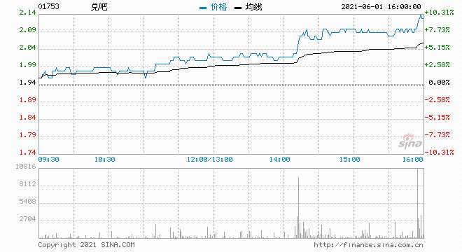 兌吧(01753)今日股價(jià)持續(xù)攀升,尾盤漲幅擴(kuò)大逾10%。截至發(fā)稿,漲9.79%,報(bào)2.13港元,成交額2149.73萬港元。