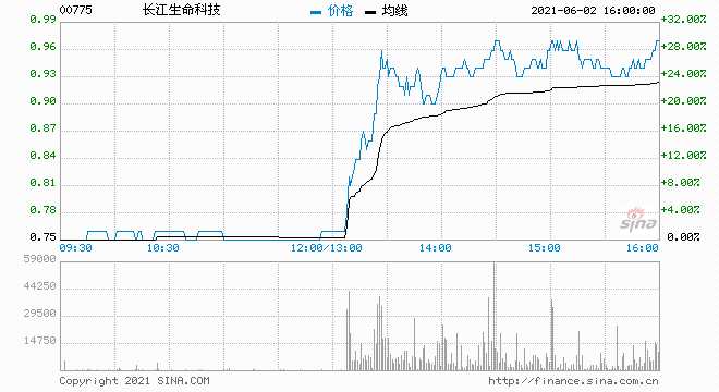 長江生命科技(0775.HK)今日放量暴漲,下午盤中一度拉升漲30.67%報(bào)0.98港元,股價(jià)創(chuàng)去年9月以來新高,市值94億港元。