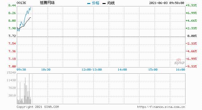 恒騰網(wǎng)絡(luò)(0136.HK)高開3.5%,報7.99港元,最新市值737億港元。