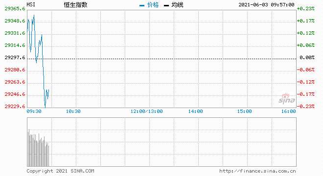 港股三大指數(shù)開盤漲跌不一,恒指漲0.23%報29365點,國指漲0.02%報10953點,恒生科技指數(shù)跌0.09%報8227點。