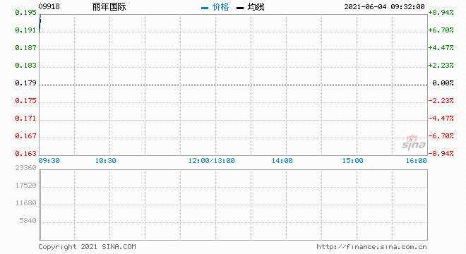 麗年國際(9918.HK)高開5.59%,報0.18港元,總市值3.78億港元。