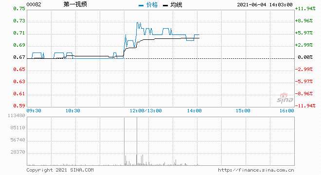 第一視頻(00082.HK)盤中拉升一度漲近9%報0.73港元,市值33億港元。