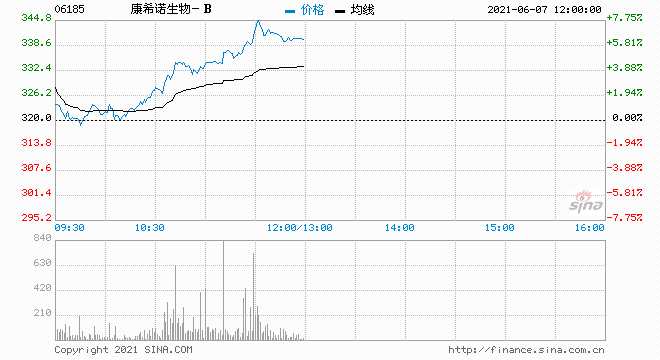 康希諾生物-B(06185)早盤逆市漲超5%,截至發(fā)稿,漲5.31%,報(bào)337港元,成交額3.3億港元。