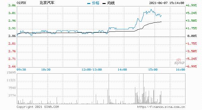 北京汽車急升近6% 現(xiàn)報3.03港元