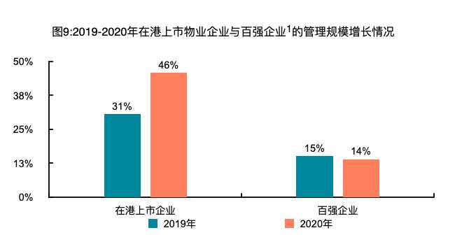 截至2020年底,40家在港物業(yè)服務(wù)上市公司在管面積均值約1.09億平方米,同比增長(zhǎng)近46%,合約面積均值1.80億平方米,同比增長(zhǎng)約28.6%??焖偻卣沟囊?guī)模為上市公司創(chuàng)收帶來(lái)持續(xù)的增長(zhǎng)源動(dòng)力,同時(shí)也成為上市物業(yè)企業(yè)在資本市場(chǎng)上乘風(fēng)破浪的強(qiáng)有力底牌。