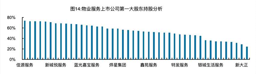 目前物業(yè)服務(wù)上市公司多數(shù)由關(guān)聯(lián)方公司拆分獨(dú)立而來(lái)。大股東相對(duì)穩(wěn)定,有助于物業(yè)服務(wù)企業(yè)保持戰(zhàn)略的一致性和連貫性,有利于穩(wěn)定市場(chǎng)投資者對(duì)公司業(yè)務(wù)發(fā)展方向的預(yù)期,有效保證了企業(yè)發(fā)展的穩(wěn)定性。
