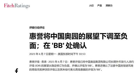惠譽(yù)確認(rèn)中國(guó)奧園“BB”評(píng)級(jí) 展望從穩(wěn)定調(diào)整至負(fù)面