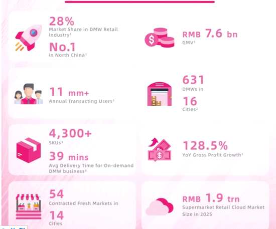 每日優(yōu)鮮成立于2014年10月,并于次年5月在國內(nèi)開創(chuàng)前置倉(DMW)模式。招股書中顯示,截至2021年3月31日,每日優(yōu)鮮在中國16個城市建立了631個前置倉,累計交易用戶超3100萬。