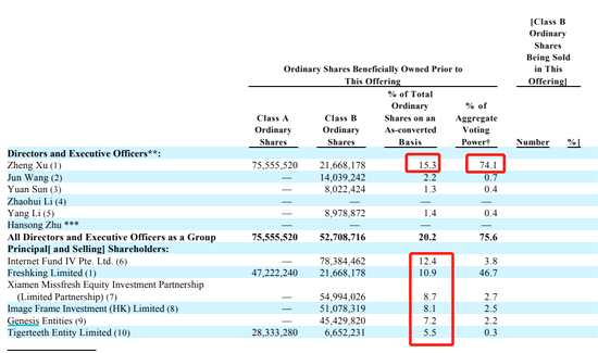 公司創(chuàng)始人兼CEO徐正持股公司15.3%,擁有公司74.1%的表決權(quán)。徐正更是一位天才少年,1996年,在他15歲便考入了中國科學(xué)技術(shù)大學(xué),雙學(xué)士。