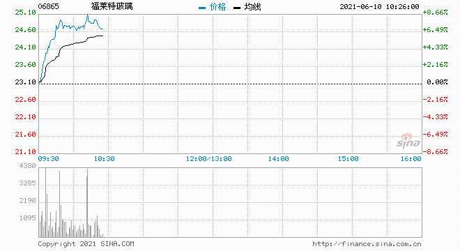 福萊特玻璃(6865.HK)直線拉升漲超7%,報(bào)24.75港元,總市值733億港元。