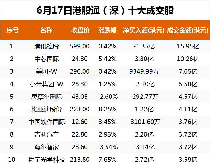 6月17日,截至港股收盤(pán),南向資金當(dāng)日成交凈賣額為5.49億港元。其中,港股通(滬)當(dāng)日成交凈賣額為17.53億港元;港股通(深)當(dāng)日成交凈買(mǎi)額為12.04億港元。