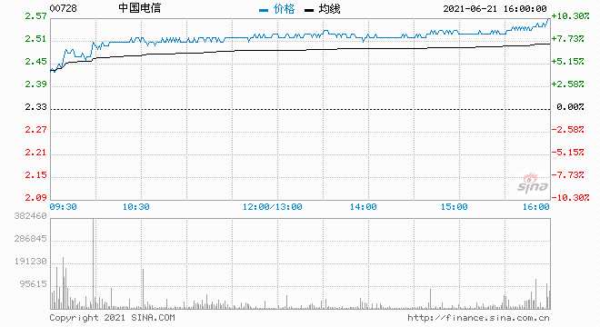 中國(guó)電信收漲超11% 創(chuàng)2008年以來(lái)最大單日漲幅