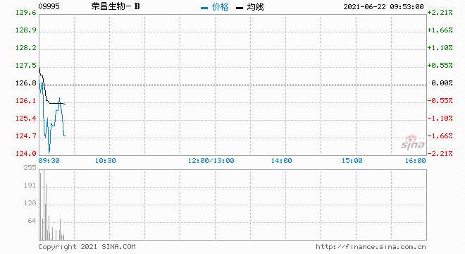 榮昌生物-B(9995.HK)高開3.31%,報131港元,最新市值641億港元。