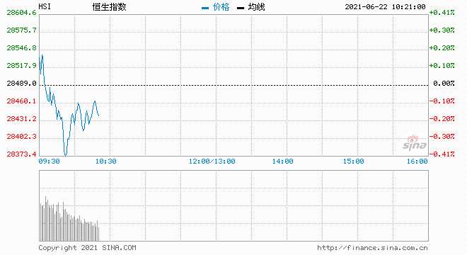 摘要: 昨日恒指低開299點(diǎn),開盤即挫逾400點(diǎn),之后震蕩向上,跌幅曾縮至211點(diǎn),見全日高位28590.22點(diǎn);午后曾挫486點(diǎn),見全日低位28314.93點(diǎn)。恒指收?qǐng)?bào)28489點(diǎn),跌312點(diǎn)或1.1%,