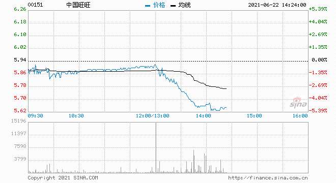 中國旺旺(0151.HK)午后跳水,現(xiàn)報(bào)5.63港元,跌5.21%,最新市值677億港元。