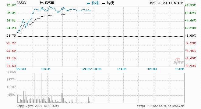 港股長城汽車和吉利汽車漲超7%,比亞迪股份漲近4%;A股曙光股份(600303,股吧)、江淮汽車(600418,股吧)和長安汽車(000625,股吧)漲停,江鈴汽車(000550,股吧)漲超6%,海馬汽車、北汽藍(lán)谷(600733,股吧)、長城汽車、東風(fēng)汽車(600006,股吧)等跟漲。
